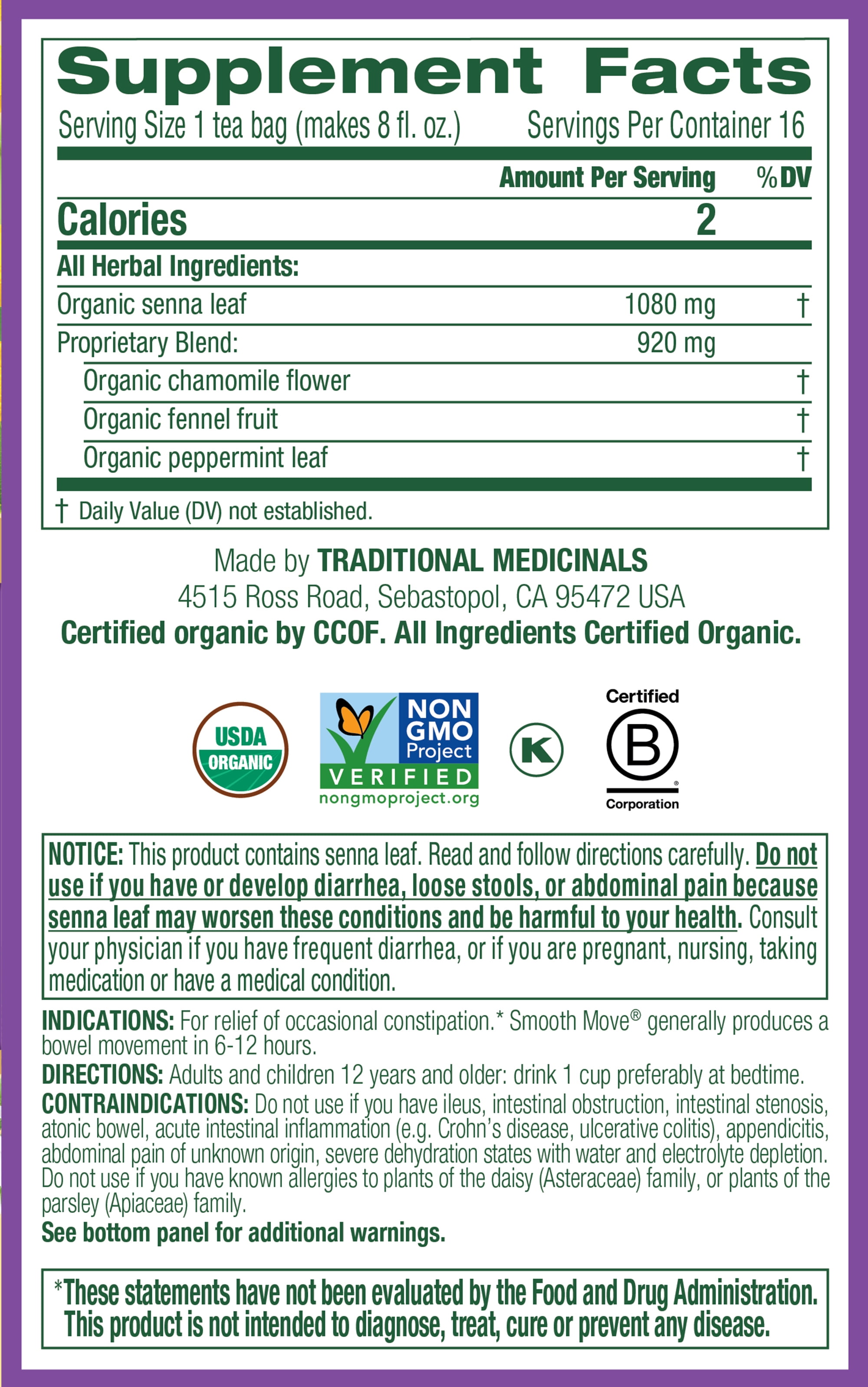 Traditional Medicinals Herbal Tea Organic Smooth Move Chamomile Senna Tea Bags 16 Count Walmart Com
