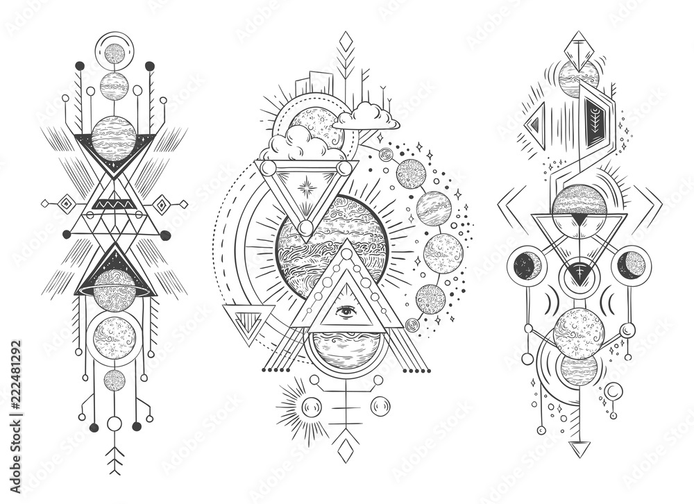 Solar System Planet Sketch Parade Of Planets Moon Phases And Hand Drawn Astrology Astrological Tattoo Vector Illustration Stock Vektorgrafik Adobe Stock